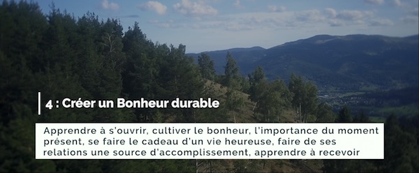 UNE IMMERSION DANS LE BONHEUR. C'est une expérience profonde qui vous attend sur le bonheur et l'instant présent avec cet enseignement le plus immersif du Stage Vidéo. IL NE SE RACONTE PAS, IL SE VIT.