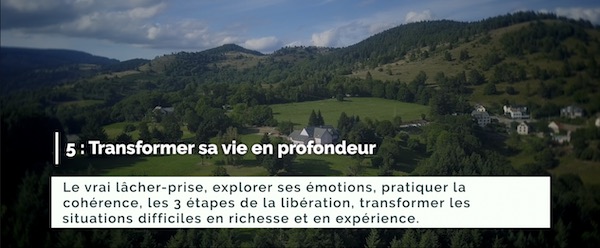 structurés de façon simples et pédagogiques pour vous aider à réaliser vos aspirations. 5 parties, 5 thÚmes, 5 partages profonds et éclairants. 6h30 au total